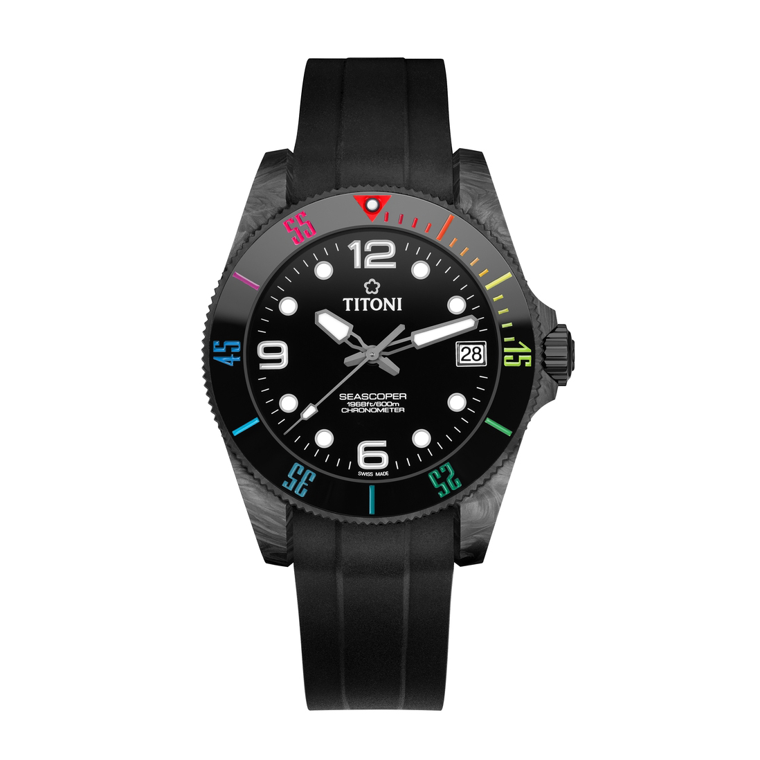 Die COSC-zertifizierte Seascoper 600 CarbonTech mit dem eigenen Manufakturwerk T10 ist hergestellt aus Carbon. Dieses jüngste Modell in der legendären Seascoper-Serie ist trotz Robustheit äusserst leicht an Gewicht und wirkt mit seinem schwarzen Look sportlich-modern.